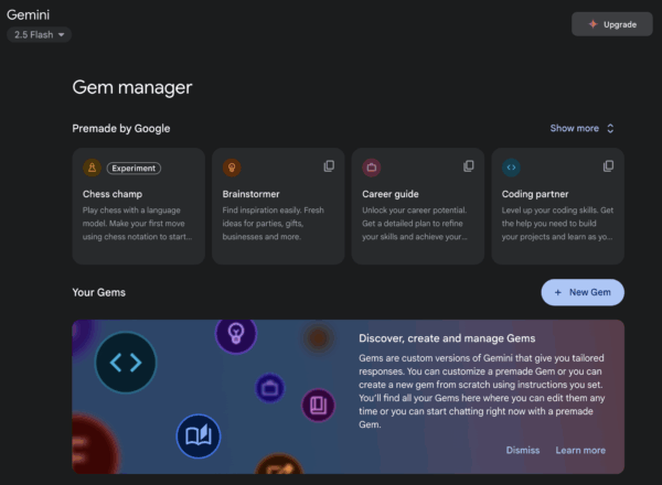 Gemini is designed to serve both casual users and developers. Through the Gemini web app (formerly Bard), users can interact conversationally with the model, ask complex questions, or get help writing code and documents. This app also offers Gems, premade or custom prompts that can be saved for future use and help you with specific needs.
