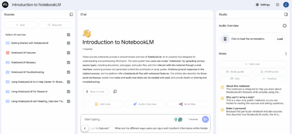 One of the standout features of NotebookLM is its ability to create structured summaries, highlight key themes, and generate helpful outlines based on the uploaded sources. You can interact with the model by asking detailed questions, getting explanations of terms, or generating content like FAQs or briefing docs. This productivity tool blends note-taking, research, and brainstorming in one interface.