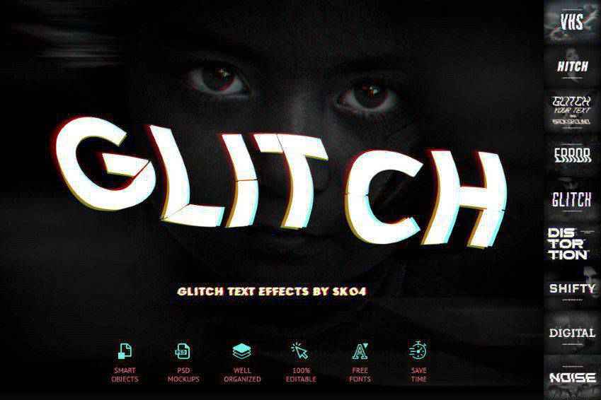 Grunge Glitch Photo FX is another excellent option. The intense effect can be used on photographs, illustrations, or even logos. It includes over 20 glitch effects, 10 textures, and 7 RGB color effects. The effect is also non-destructive, so your original photos stay intact.