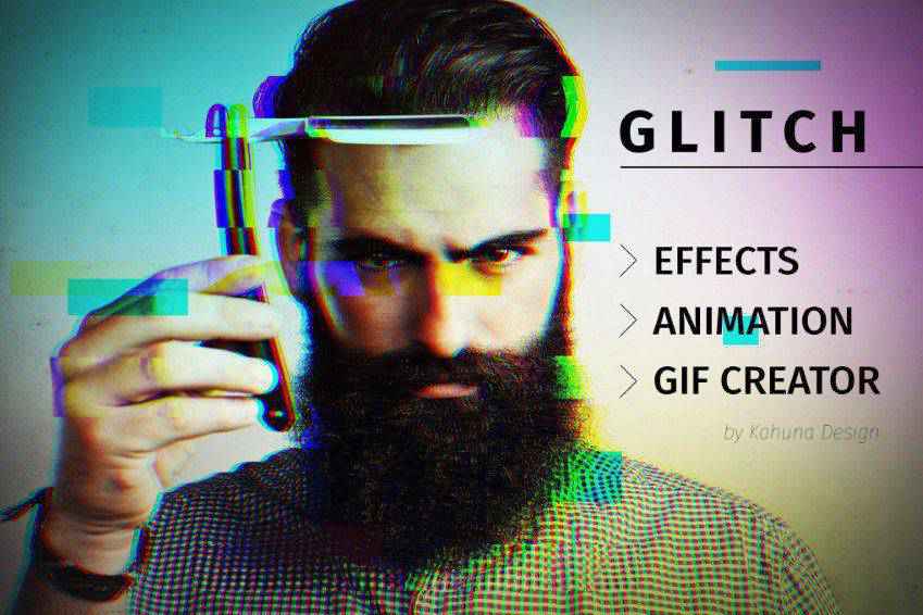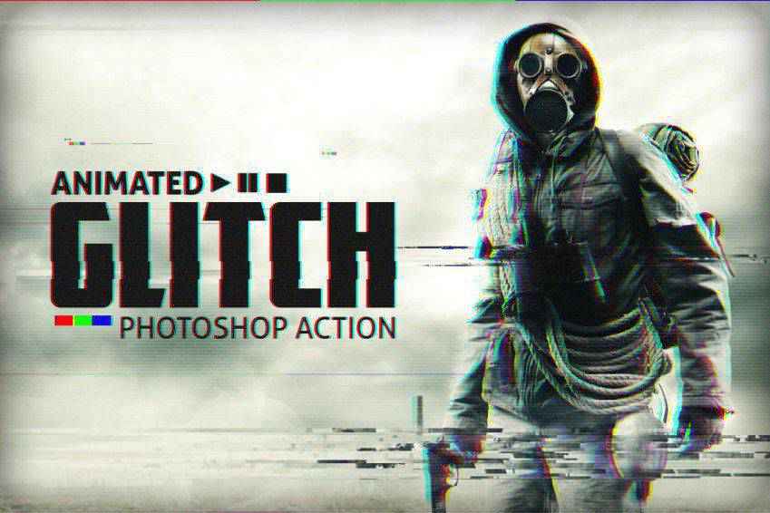 You may also want to consider the GIF Glitch Animated Photoshop Action. This one provides a template that can be used in various ways to create GIFs or animated video sequences out of photos, text, or illustrations. All you have to do is add your photo to a smart object. It also comes with a full PDF instruction manual.
