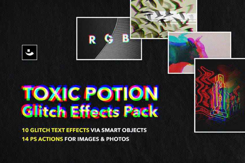 If you want to add a glitch effect to text in your photo composites, this action is a great choice. Once you’ve created a design, add it to a smart object. The glitch effect will work on this object. Or you can glitch your background instead. This action set comes with ten styles, organized layers, full customization, and a PDF help file.