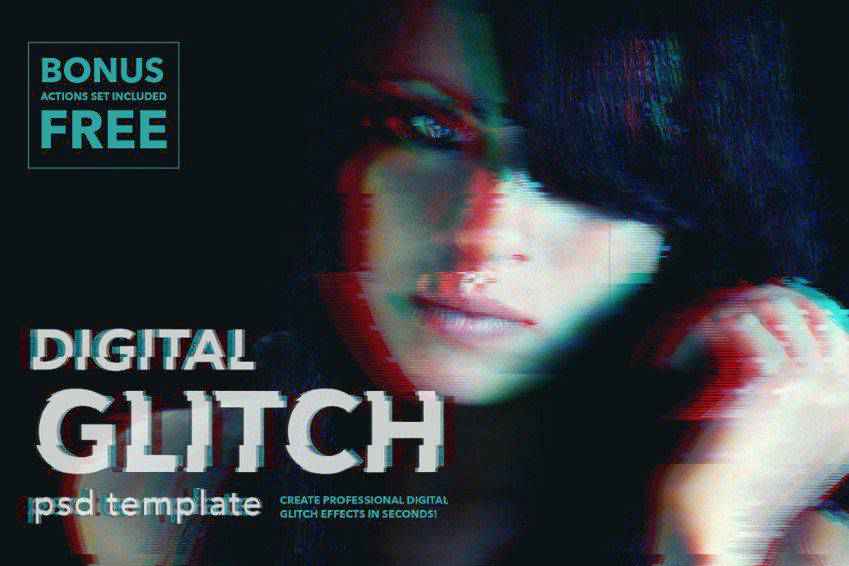 Last in our collection is this Glitch Photoshop PSD Template, which works by distorting photos in a stylistic way with just a couple of clicks. It’s super easy to use and comes with ten color settings, ten glitch layers, and 11 free actions for creating additional distortion effects. This set also comes with full instructions and a PDF tip guide.