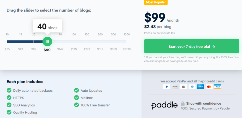 For now, let’s look into the plans and prices offered by them for their WordPress PBN Hosting: