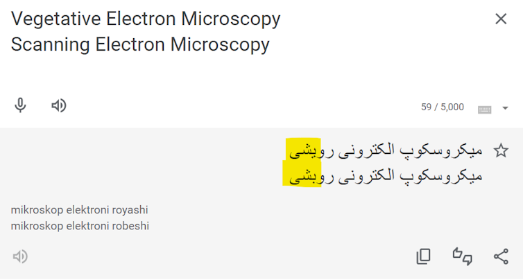 Decades later, “vegetative electron microscopy” turned up in some Iranian scientific papers. In 2017 and 2019, two papers used the term in English captions and abstracts.