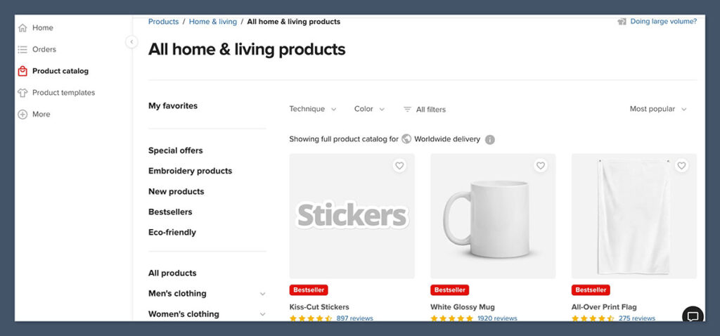 If you’re used to Shopify or Amazon Seller Central, Printful will feel familiar. It’s designed for ecommerce pros and sellers who want to scale fast.