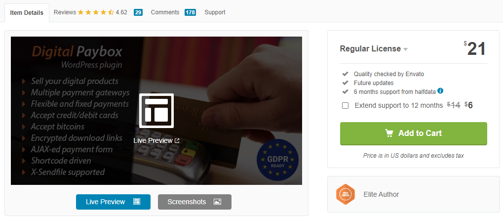 Digital PayBox remains on sale at CodeCanyon. The plugin allows customers to pay for the items which are downloadable. Customers choose their payment method from the PayBox Created, and Bitcoin is one of them. It supports all major credit/debit cards. The customer can choose to pay the amount they want to pay, but you also get an option to set a minimum limit or set a fixed rate for the downloadable product.