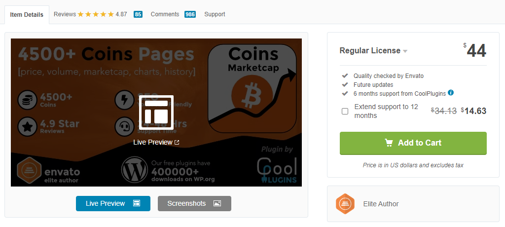 - Show and sort 1000+ crypto coins on your WordPress Site;