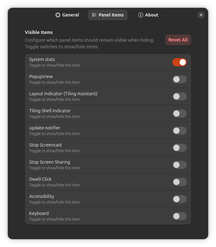 I installed it using Extension Manager on a Ubuntu 25.10 system, and I found it straightforward from start to finish. First, I enabled a few other extensions to properly test how Veil handles multiple panel items. Once that was done, everything clicked into place.