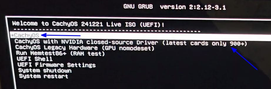 There was an option to boot into CachyOS with NVIDIA. I went with the default option.