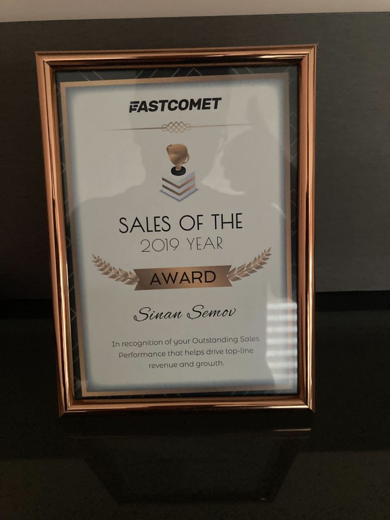 Reflecting on my time at FastComet, there’s one particular achievement that stands out. In my first year, I was incredibly honored to be awarded the prestigious ‘Sales of the Year’ accolade, a testament to the dedication and hard work I have put into my role.