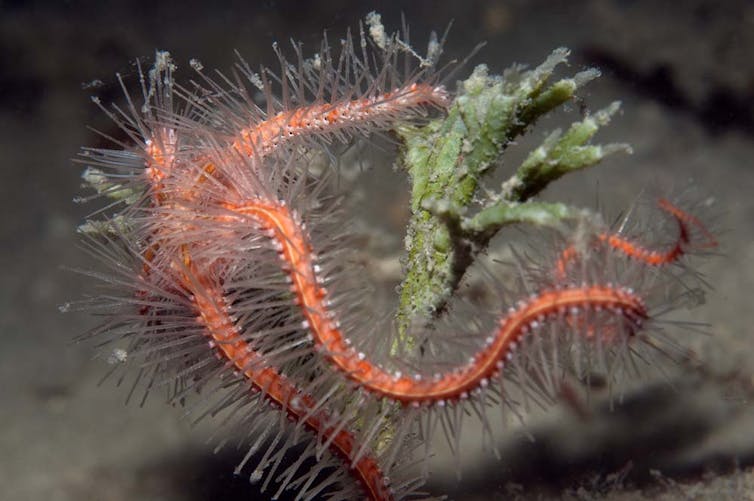 We studied a group of animals called brittle stars, strange spiny creatures with a disc-like body and five sinuous or branched arms. They have a central mouth and gut, but no brain, no eyes and no heart.
