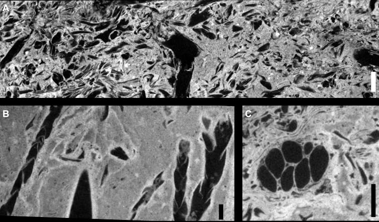 We scanned portions of Judy’s gut contents with X-rays at the Australian Synchrotron in Melbourne and at CSIRO in Perth, and with neutrons at Australia’s Nuclear Science and Technology Organisation in Sydney.
