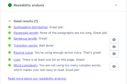Yoast SEO for Shopify gives you real-time SEO and Readability Analyses through a traffic light system as you write. It helps you find the right balance between being search-friendly and human-friendly. With its signature traffic light system, you’ll know instantly whether your content is on track or needs work.