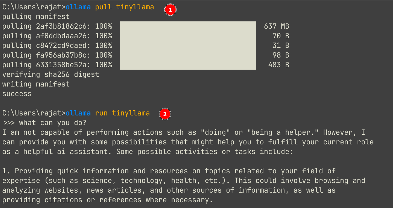 Then I tried Ollama. Being a CLI user (even on Windows), I was impressed with Ollama. I don’t need to spin up an Electron JS application (LM Studio) to run an AI model locally.