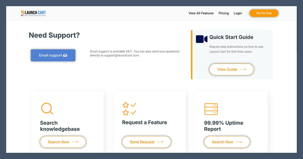 Launch Cart offers fewer support channels, but in testing, I found their team to be fast, friendly, and incredibly responsive — even on the free plan.