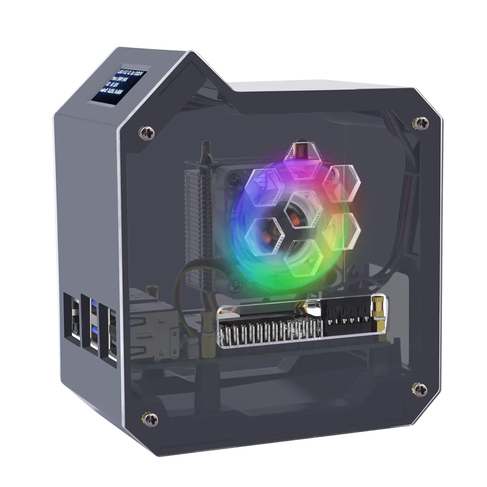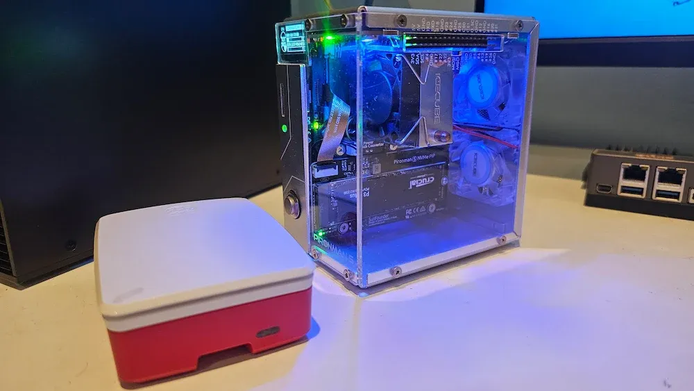The Pironman 5 case transforms your Raspberry Pi 5 into a sleek aluminum mini-tower with advanced cooling, NVMe M.2 SSD support, customizable RGB lighting, dual standard HDMI ports, and a secure power switch.