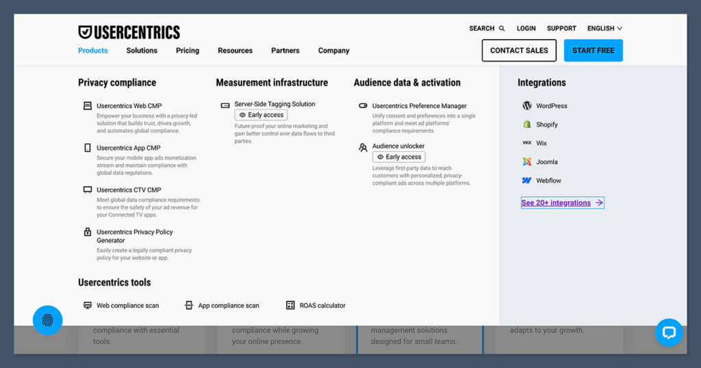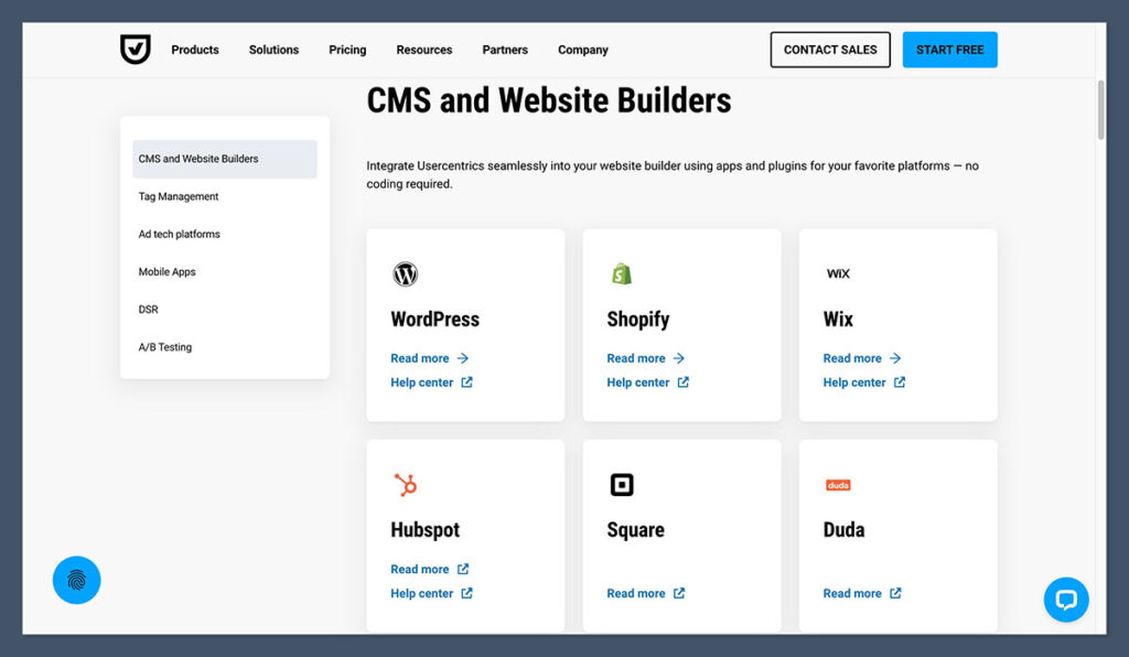 One of the best things about Usercentrics is that it’s flexible. It’s designed to integrate with all the tools and platforms you’re already using. For instance, it works alongside Shopify, WordPress, Wix, Square, Webflow, Squarespace, and Joomla sites.